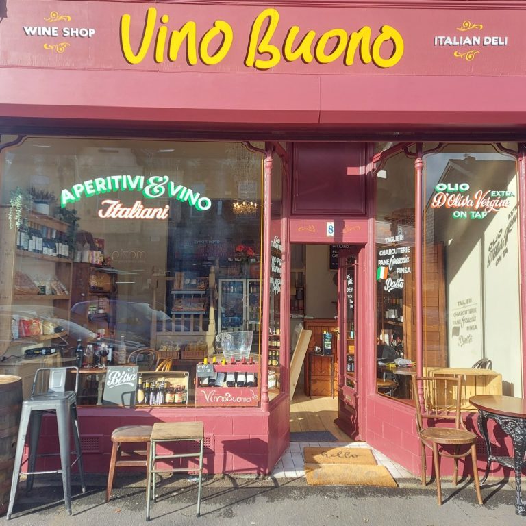 Vino Buono is a deli wine shop and a small restaurant specializing in Italian products only.